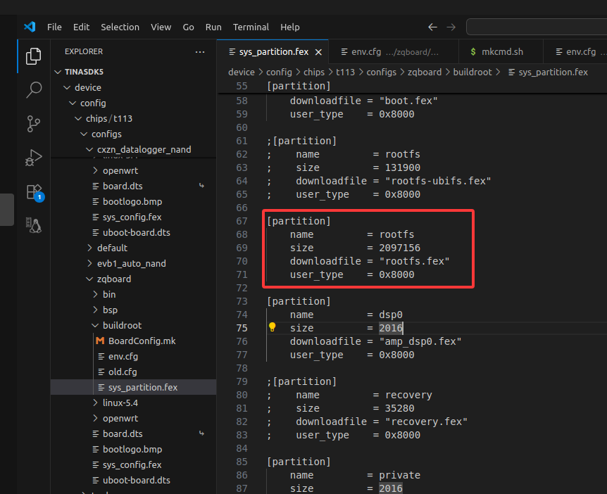 将之前的rootfs-ubifs.fex改成rootfs.fex,顺便把size也改成2097156 ,大约1G多一点的大小
