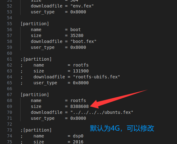 从分区文件可以看出,rootfs实际上是源码根目录下的ubuntu.fex文件,它是一个ext4格式的文件系统镜像。我们可以通过挂载和chroot的方式来定制Ubuntu根文件系统。